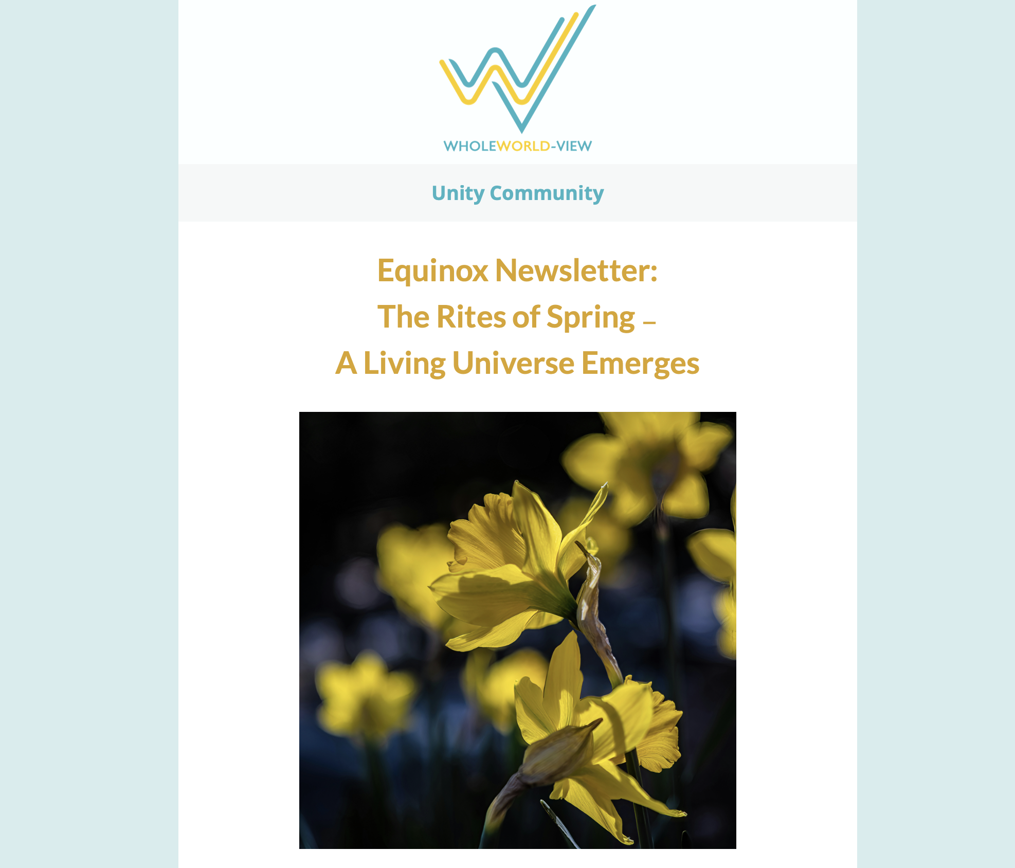 Here you will find an archive of our most recent newsletters. These are great place to discover the rich happenings, partners, people and written word articles/talks that we offer. We hope you enjoy them.